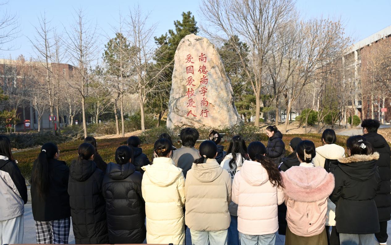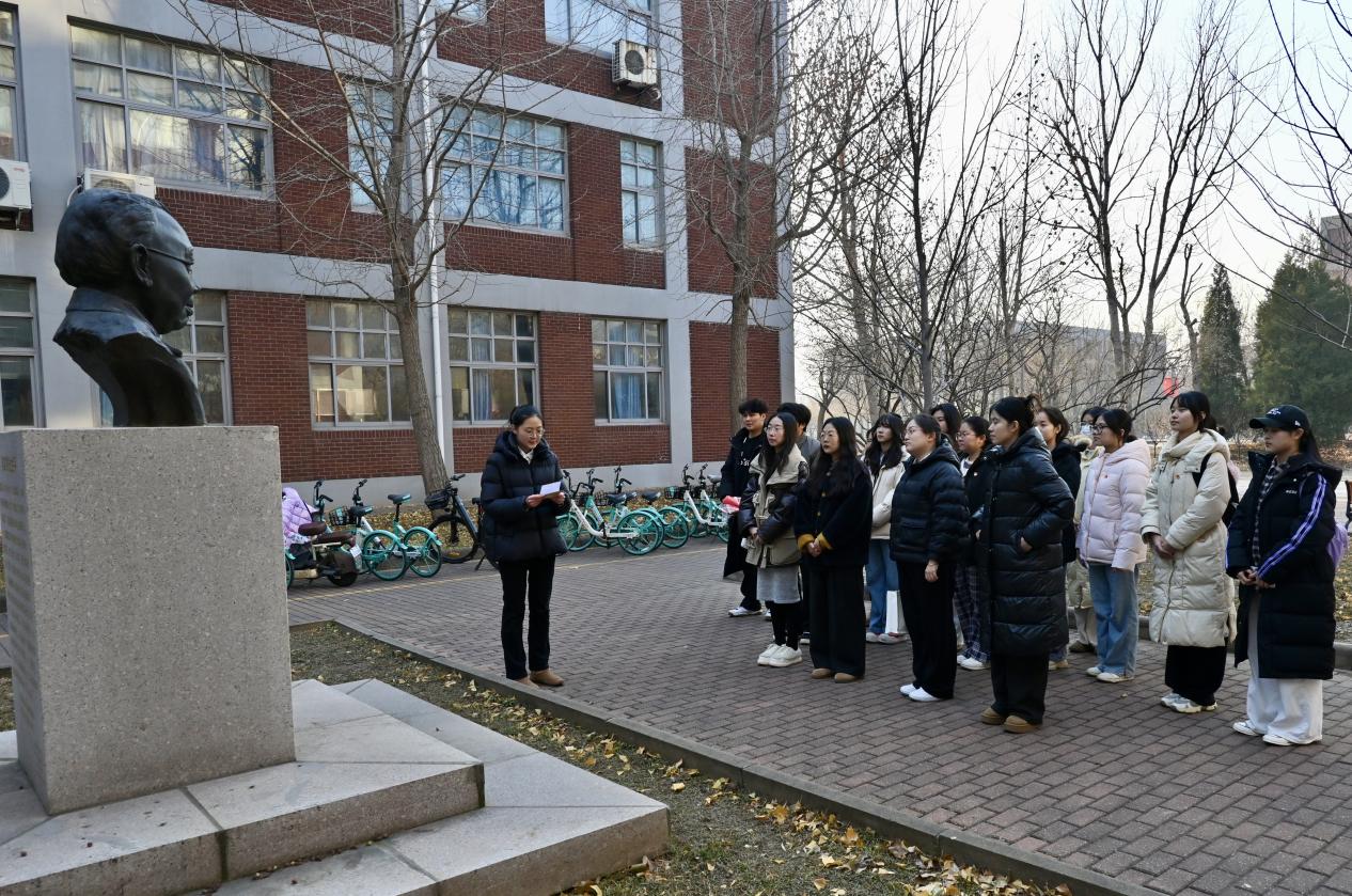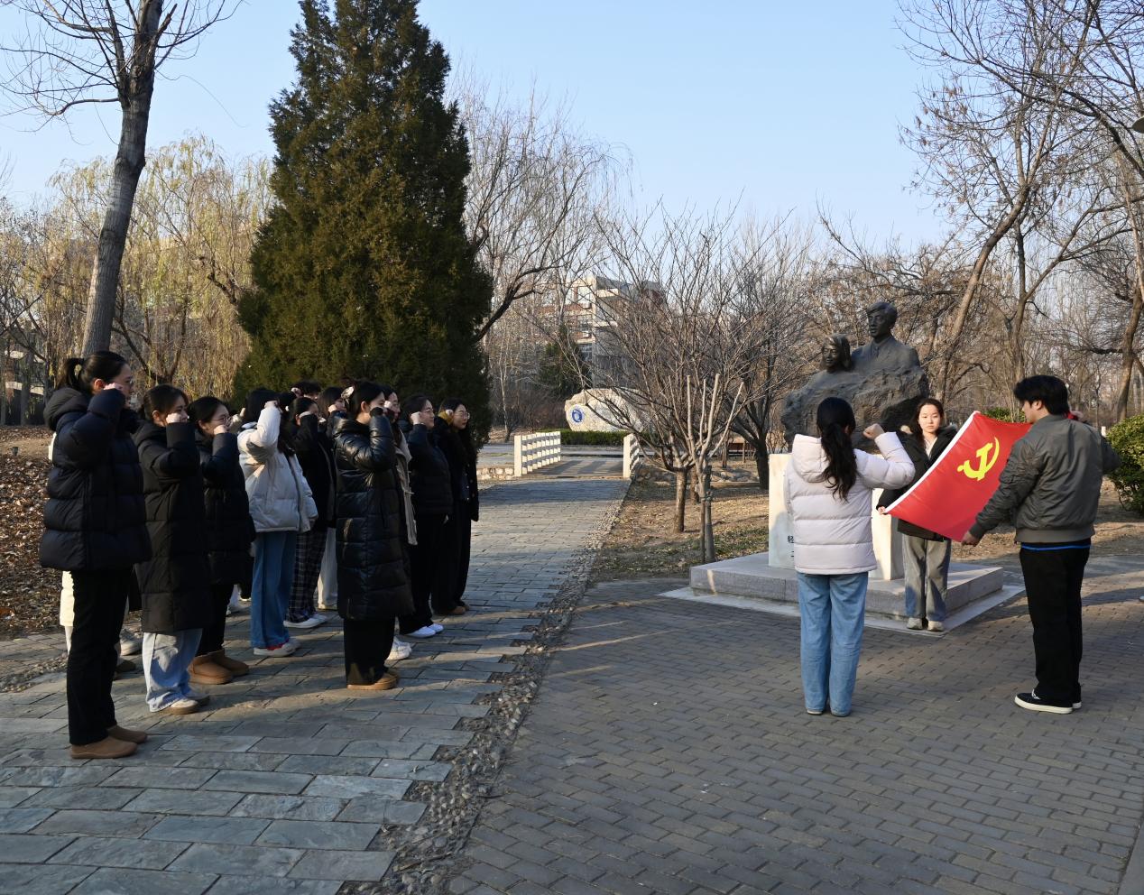 二、实地研学,浸润红色基因 会后,全体党员开启了以“寻访科大红色印记,传承爱国奋斗精神”为主题的校园红色文化研学之旅,由外国语学院党建中心学生和化工与材料学院学生担任讲解员。在被誉为“盐业黄埔”的展室中,党员们通过珍贵的历史图片与实物资料,深入了解了学校与国家化工事业同呼吸、共命运的奋斗历程,深刻体悟到“尚德尚学尚行,爱国爱校爱人”校训精神中蕴含的报国情怀与实干品格;在校训石前,大家驻足凝望,重温办学初心;在言泉像前,感悟隆言泉先生献身教育、科技报国的“科学家精神”;在朱颖烈士像前,全体党员庄严肃立,举行重温入党誓词仪式。铮铮誓言,回荡在冬日校园,表达了青年党员继承遗志、为党和人民事业奋斗终身的坚定决心。