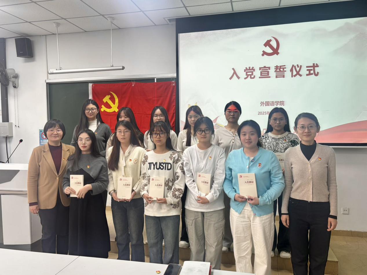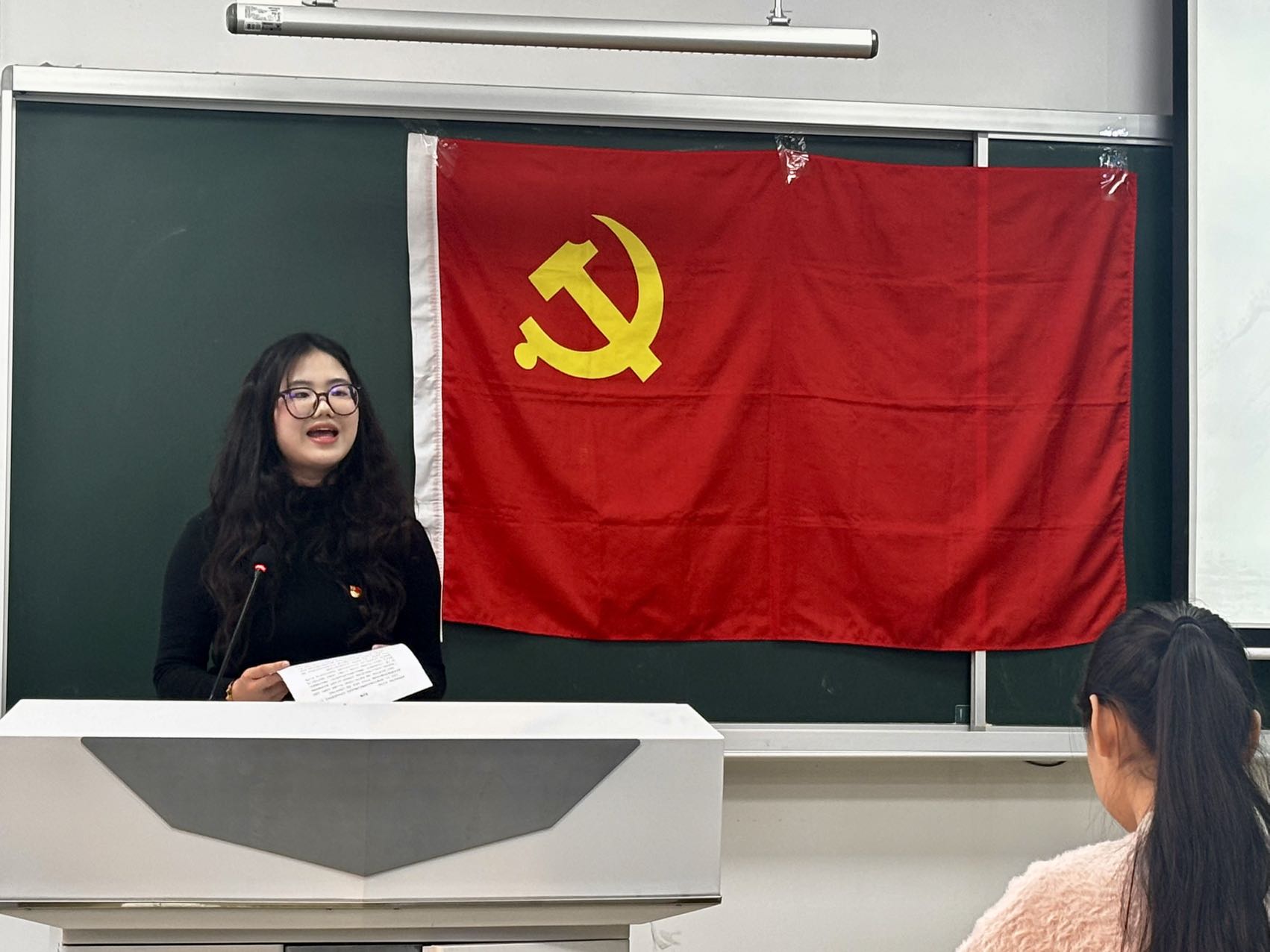 2022级英语专业学生刘杨柳青代表新发展党员发言。她表示,将时刻牢记党员身份,不断加强理论学习,提高政治素养,在学习、工作和生活中发挥先锋模范作用,努力成为具有家国情怀和国际视野的外语人才。