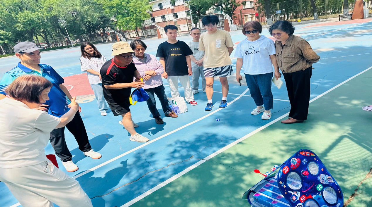 您现在的位置: 首页 >> 党群工作 >> 工会活动 >> 学院关工委举办退休教师与学生趣味运动会——老少同场展活力 趣味运动促传承2025年5月28日,天津科技大学外国语学院关工委精心组织了一场别开生面的退休教师与学生趣味运动会,活动在校园操场热烈举行,吸引了众多退休教师与学生积极参与,现场气氛欢快热烈,充满了欢声笑语。 运动会设置了多个趣味性十足的比赛项目,充分考虑到退休教师和学生的身体状况与参与度,如“丢沙包”“投掷飞镖”“粘粘球”等。