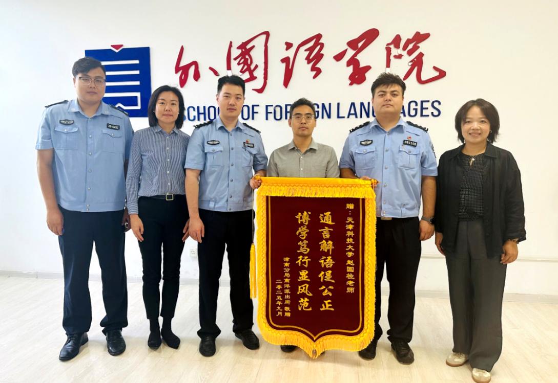 您现在的位置: 首页 >> 纪检监察 >> 工作动态 >> 我院服务基层公安工作获赠锦旗——通言解语促公正,博学笃行显风范9月9日上午,津南分局南洋派出所警官一行来到滨海中校区7号楼,对外国语学院党委委员、副院长赵国柱在上合峰会举办前夕协助派出所处理敏感涉外案件表示感谢,并赠送了提有“通言解语促公正博学笃行显风范”的锦旗。学院负责同志热情接待了派出所一行。 孙警官代表南洋派出所感谢天津科技大学对基层公安工作的理解和支持,感谢赵国柱副院长在平安天津建设关键时刻勇挑重担,以专业的翻译水平和认真负责的态度,帮助解决实际难题,确保工作顺利开展,体现了教育工作者的担当和维护公平正义的热忱。 在学校“先锋计划”的引领下,外国语学院将持续加强教风学风建设,推动学科专业内涵发展,不断提升服务国家战略和区域经济发展的水平和能力。 图文来源:外国语学院 一审一校:赵国柱 二审二校:王祎 三审三校:曾昭晔 |