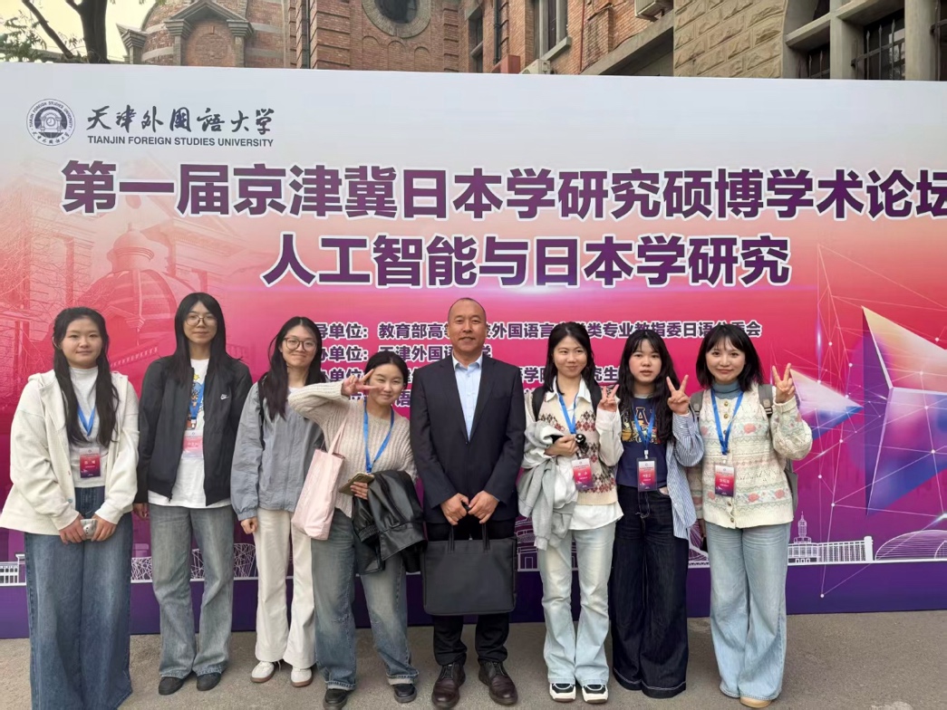 2、2025年4月,潮洛蒙教授带领日语语言文学专业研究生参加“第一届京津冀日本学研究硕博学术论坛:人工智能与日本学研究”学术会议并主持分论坛。