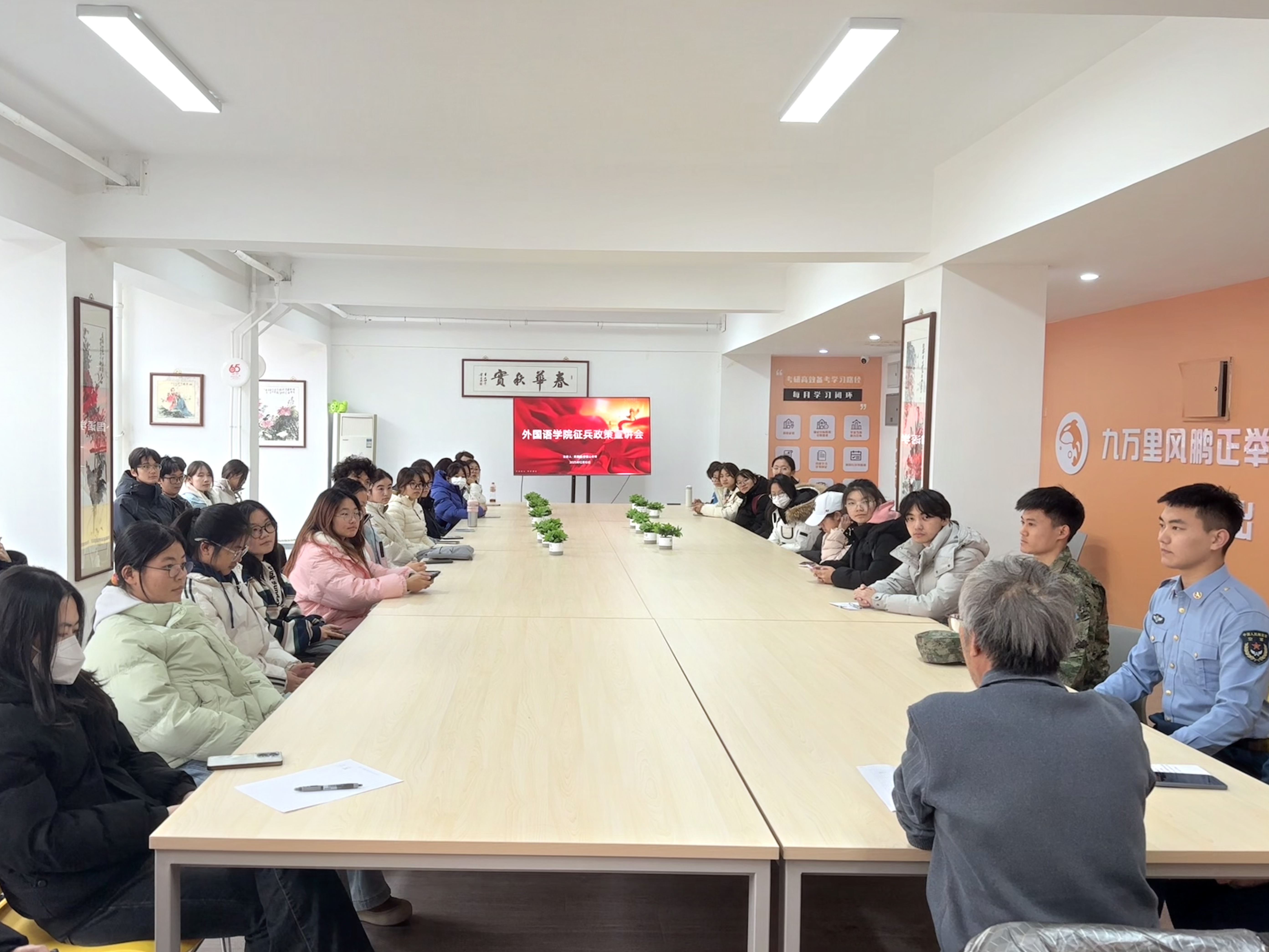 您现在的位置: 首页 >> 新闻动态 >> 学院新闻 >> 我院成功召开征兵政策宣讲会为积极响应国家号召,激发我院广大学子投身国防、报效祖国的热情,深入推动2026年度大学生征兵工作,12月10日中午,外国语学院于在一公寓“一站式”学生社区成功举办征兵政策宣讲会。学校武装部宁振山老师、退役士兵主讲,2026届毕业班辅导员孙颖主持。