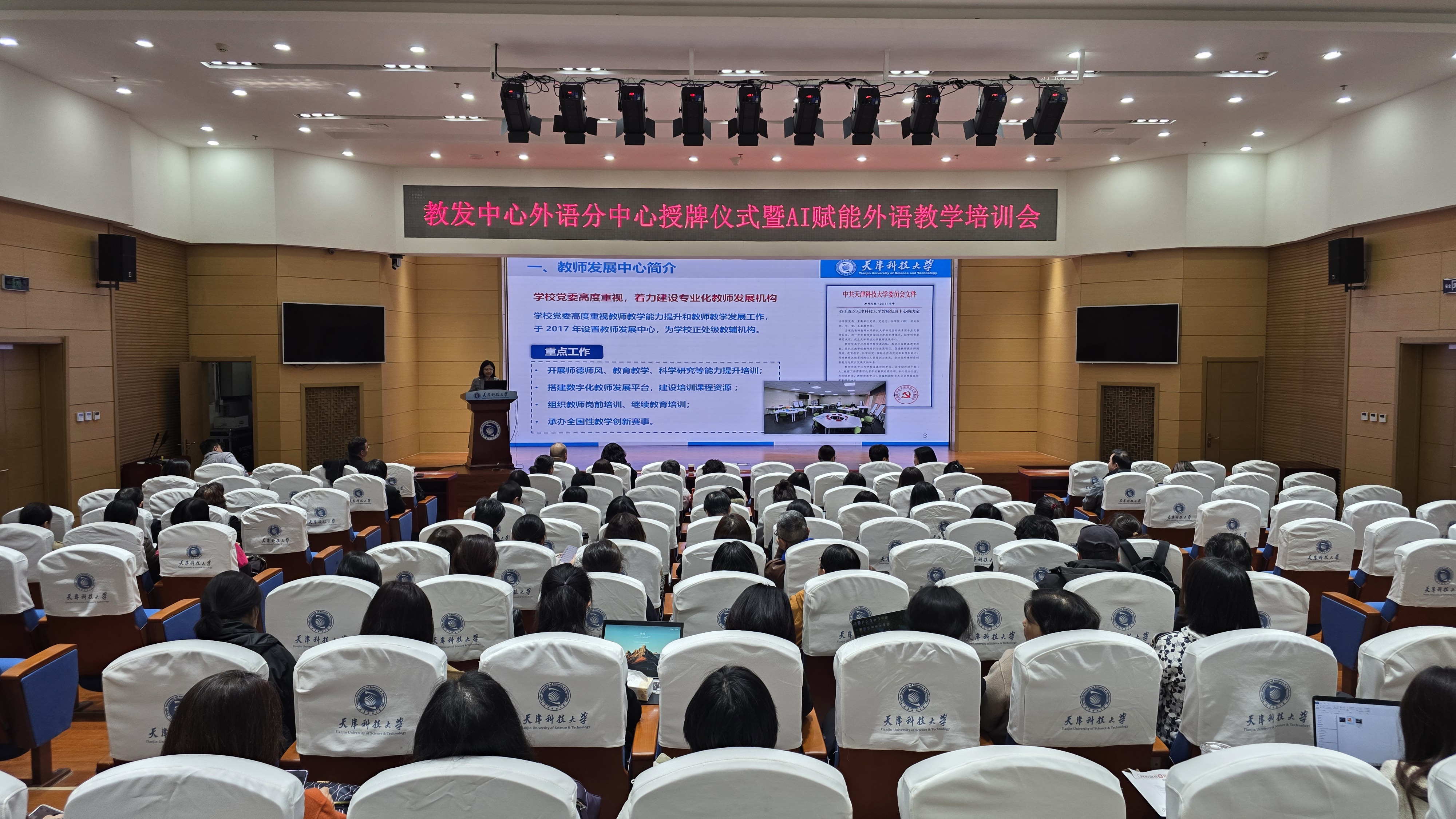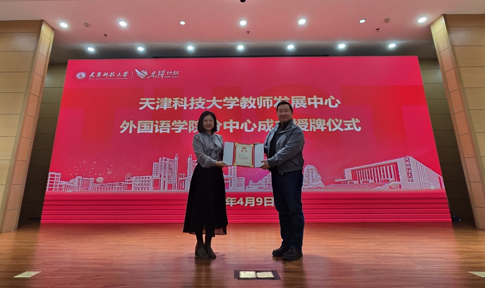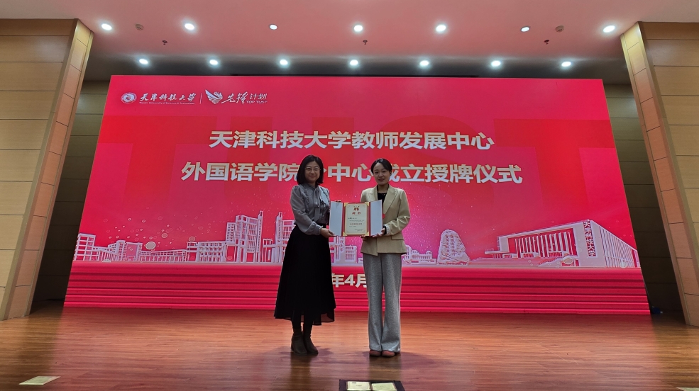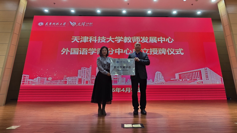 您现在的位置: 首页 >> 新闻动态 >> 学院新闻 >> 天津科技大学外国语学院教师发展分中心正式成立——校院协同凝合力 智慧赋能促成长4月9日下午,天津科技大学教师发展中心外国语学院分中心授牌仪式暨AI赋能外语教学培训会在逸夫楼报告厅举行。外国语学院领导班子、校教师发展中心副主任杨晨及学院全体教师参会,仪式由副院长赵国柱主持。