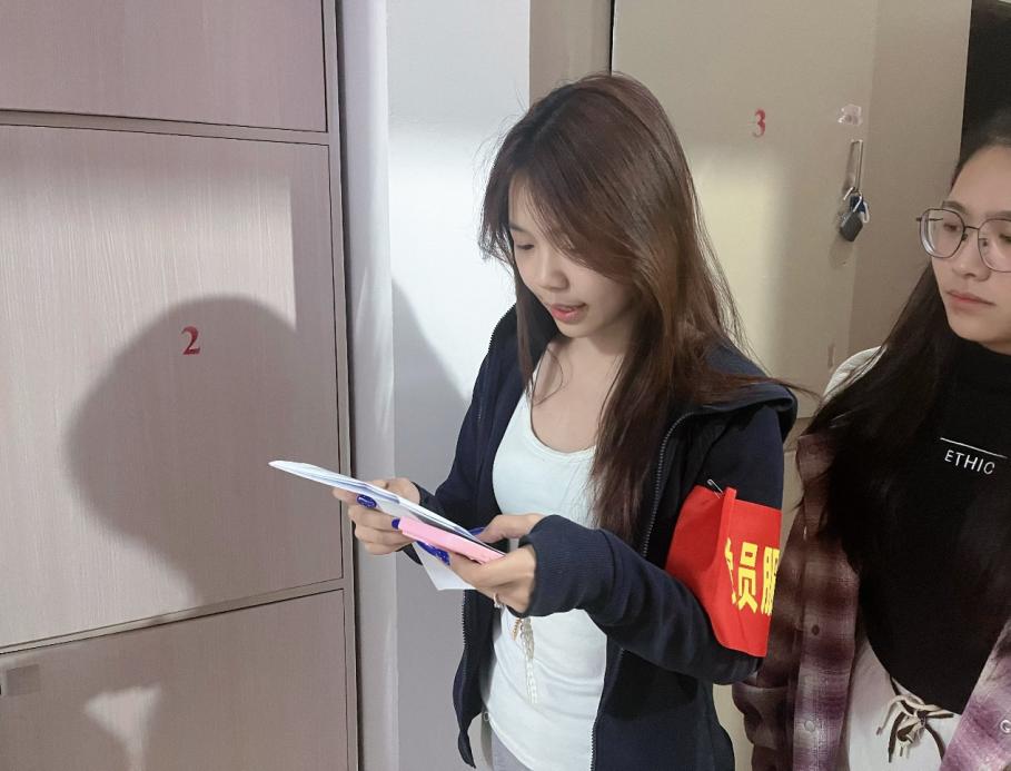 学生党员严格按照学校与学院管理标准,精准登记学生归寝状态,全面排查晚归、夜不归宿等情况,切实把宿舍纪律落到实处。抽查过程中,党员们在点名核查的同时,主动与同学们亲切沟通交流,提醒大家严格遵守宿舍管理各项规定,养成规律作息、安全自律的良好习惯。全体同学高度重视、积极配合,展现出良好的精神风貌与纪律意识。