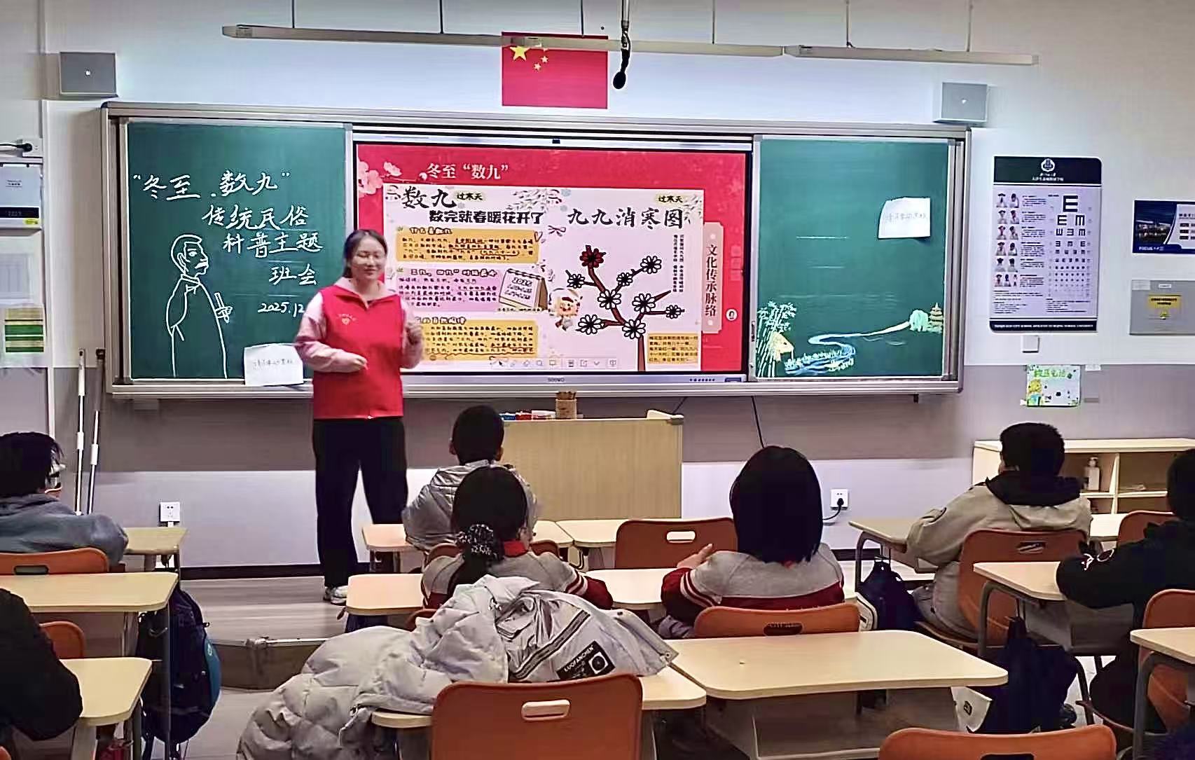 冬至,既是二十四节气中的重要节点,也蕴含着“数九”消寒、期盼春光的古老生活哲学。本次活动以“冬至数九”为核心,以“起源科普—民俗品读—文化感悟”的递进式环节展开,层层深入引导学生理解传统节日的深厚文化内涵。活动践行“知识性与趣味性相结合”的理念,依托典籍讲解数九的科学规律与历史渊源,融入诵读数九歌、介绍南北食俗、分享冬至故事等趣味活动,让学生在沉浸式体验中领悟古人智慧,多维度挖掘文化价值。