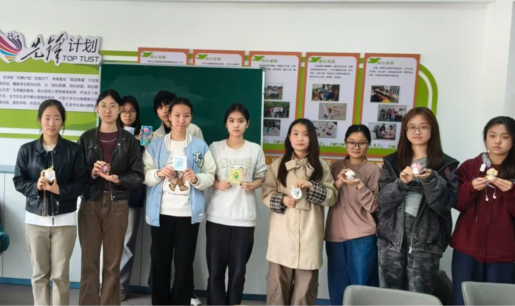 活动伊始,负责人简要介绍了石膏彩绘的基本技巧,同时讲解心理知识。在轻缓的音乐中,同学们纷纷拿起画笔,沉浸在专属自己的艺术创作里。一笔笔细腻的勾勒、一抹抹大胆的上色,既是艺术灵感的迸发,更是情绪的自然流露、内心的真实表达。活动结束后,同学们踊跃在活动群、社交媒体分享自己的彩绘作品,相互交流创作心得、点赞鼓励,不仅在分享与互动中增进了同学情谊,更营造了温暖和谐、互帮互助的心理育人氛围。