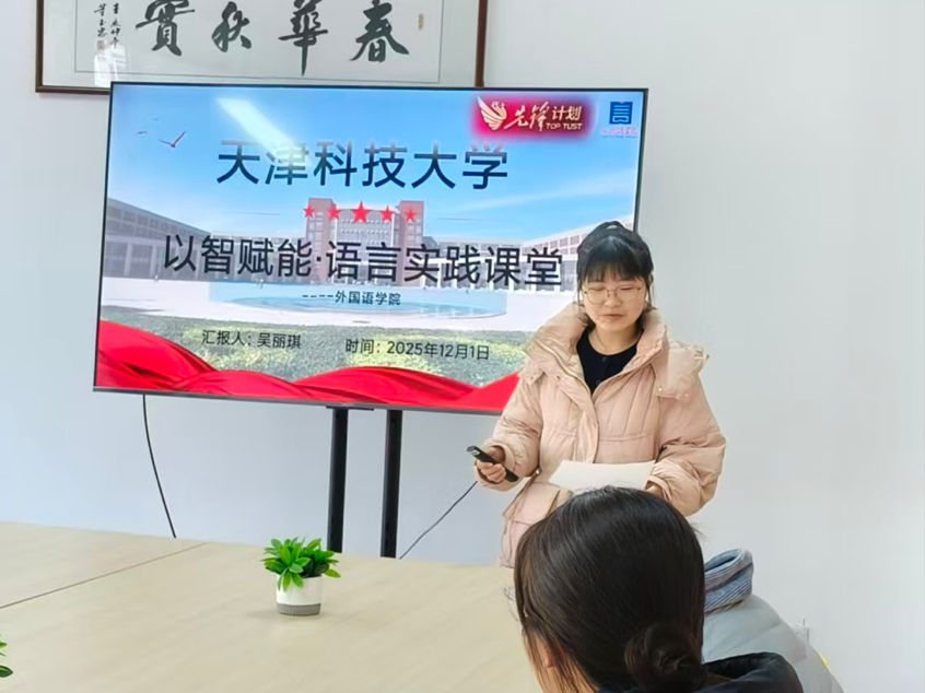 您现在的位置: 首页 >> 新闻动态 >> 学院新闻 >> 我院“阳光课堂”智育—聆听榜样故事,汲取成长力量为充分发挥优秀学子的示范引领作用,营造积极向上、互学共进的学风氛围,助力学生明晰学业规划、提升综合素养,2025年12月3日中午12:30至13:10,天津科技大学外国语学院于一站式工作站成功举办“以智赋能·精英语言实践课堂”之“优秀学子经验分享会”。本次活动由外国语学院主办,吸引了众多学子积极参与。