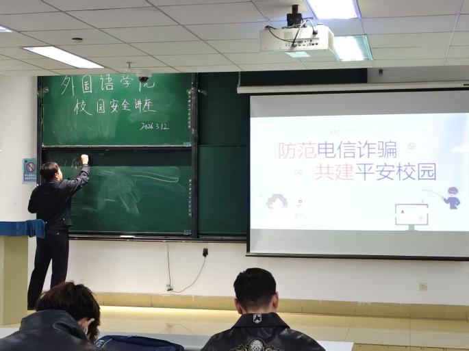 您现在的位置: 首页 >> 新闻动态 >> 学院新闻 >> 我院邀请驻校民警举办校园安全及防范电信诈骗讲座——筑牢校园安全防线为切实提升我院师生的安全防范意识,筑牢校园安全防线,3月12日,外国语学院邀请驻校民警刘耕任警官,为同学们召开校园安全及防范电信诈骗专题讲座。刘警官结合近期辖区及高校发生的真实案例,重点剖析了当前最为高发的四类电信诈骗手段,提醒同学们务必提高警惕: