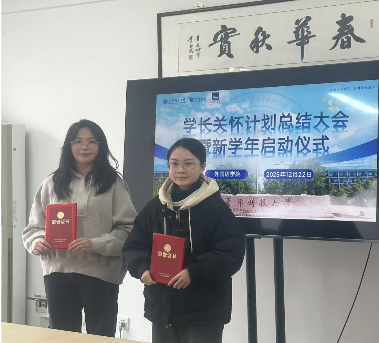 您现在的位置: 首页 >> 新闻动态 >> 学院新闻 >> 我院召开2025年学长关怀计划总结大会暨新学年启动仪式为充分发挥高年级优秀学长对大一新生的传、帮、带作用,帮助新生尽快适应大学学习和生活,12月22日,外国语学院于1公寓鲸鱼召开学长关怀计划总结大会暨新学年启动仪式。 大会开始,乔老师详细介绍了学长关怀计划,并对2024-2025学年学长关怀计划进行了总结,对上一学年学长关怀计划的优秀学长进行表彰,充分肯定了学长的辛勤付出,希望新一届学长能够向他们学习。随后,优秀学长代表李银洁发言,她以自身的实际经验表达了参加学长关怀计划的感受和体会,给新一届学长们提供了启发。被关怀学生代表陶银凤也进行了发言,她简述了去年参加活动时与学姐相处的点点滴滴,表达了对学姐的感谢,更坚定了新一届学弟学妹的信心。