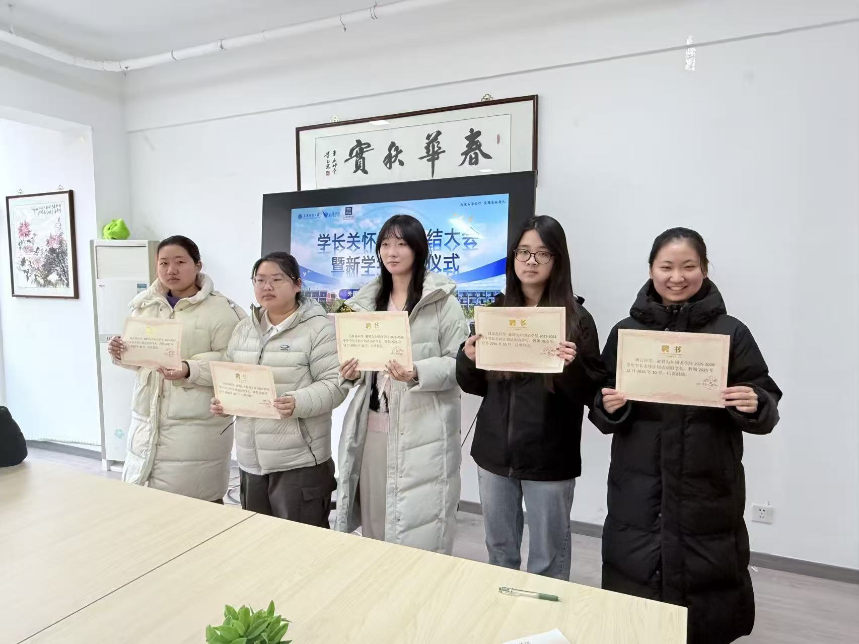 乔老师为2025-2026学年新聘学长颁发了聘书,并对各位学长提出了具体要求,希望高年级学长对被关怀的新生在学业指导、新环境适应、心理困惑、社会实践和职业生涯发展等方面进行指导。