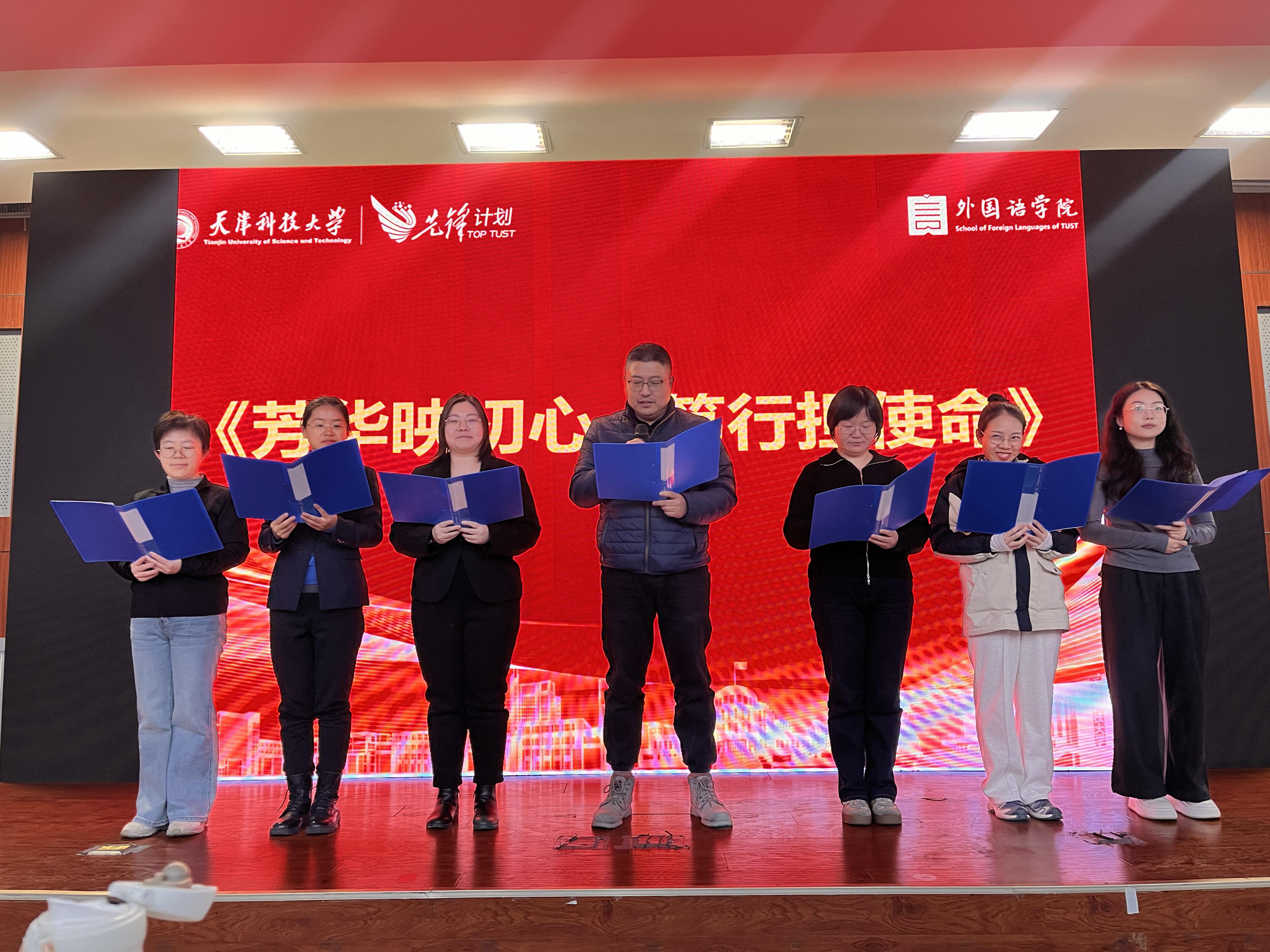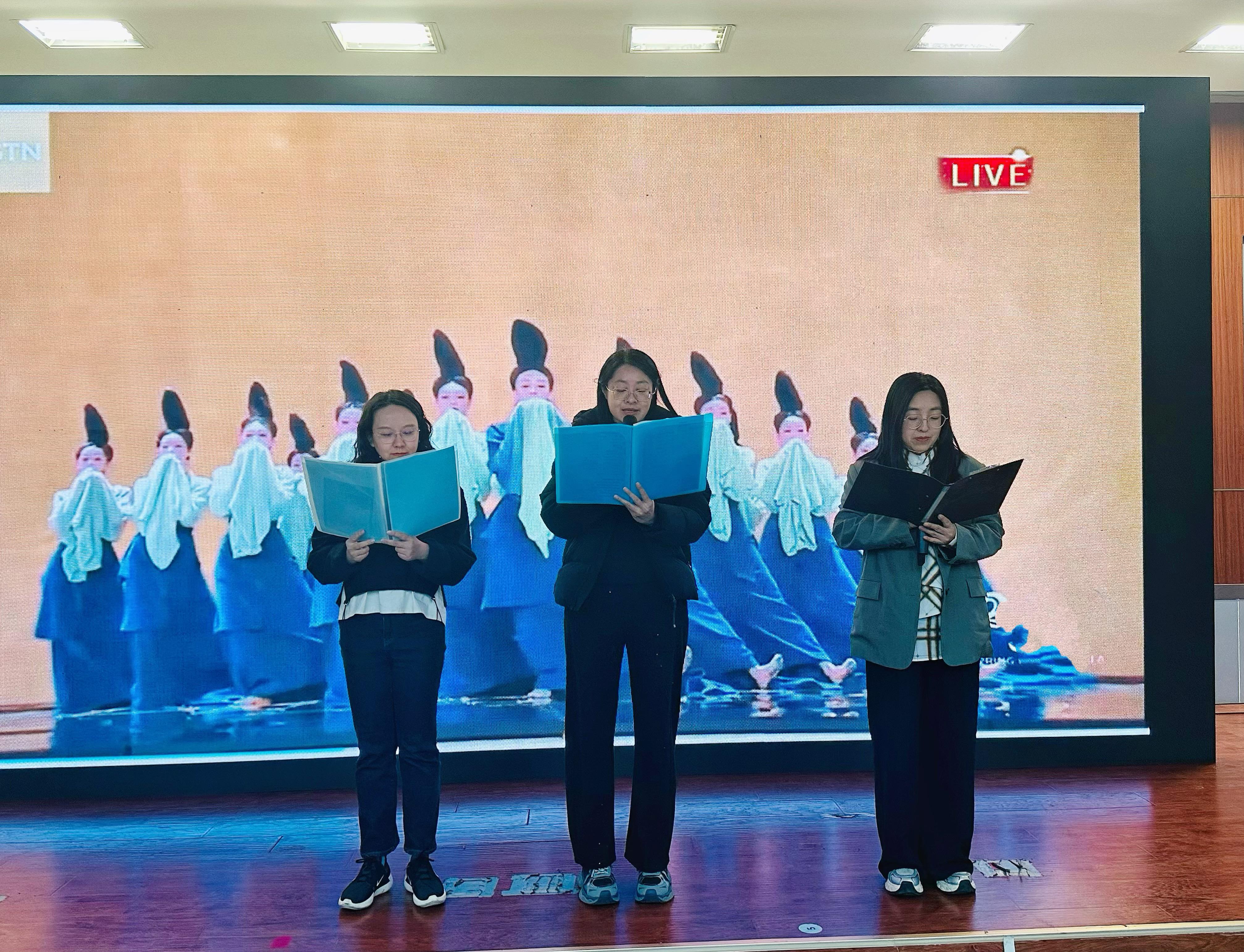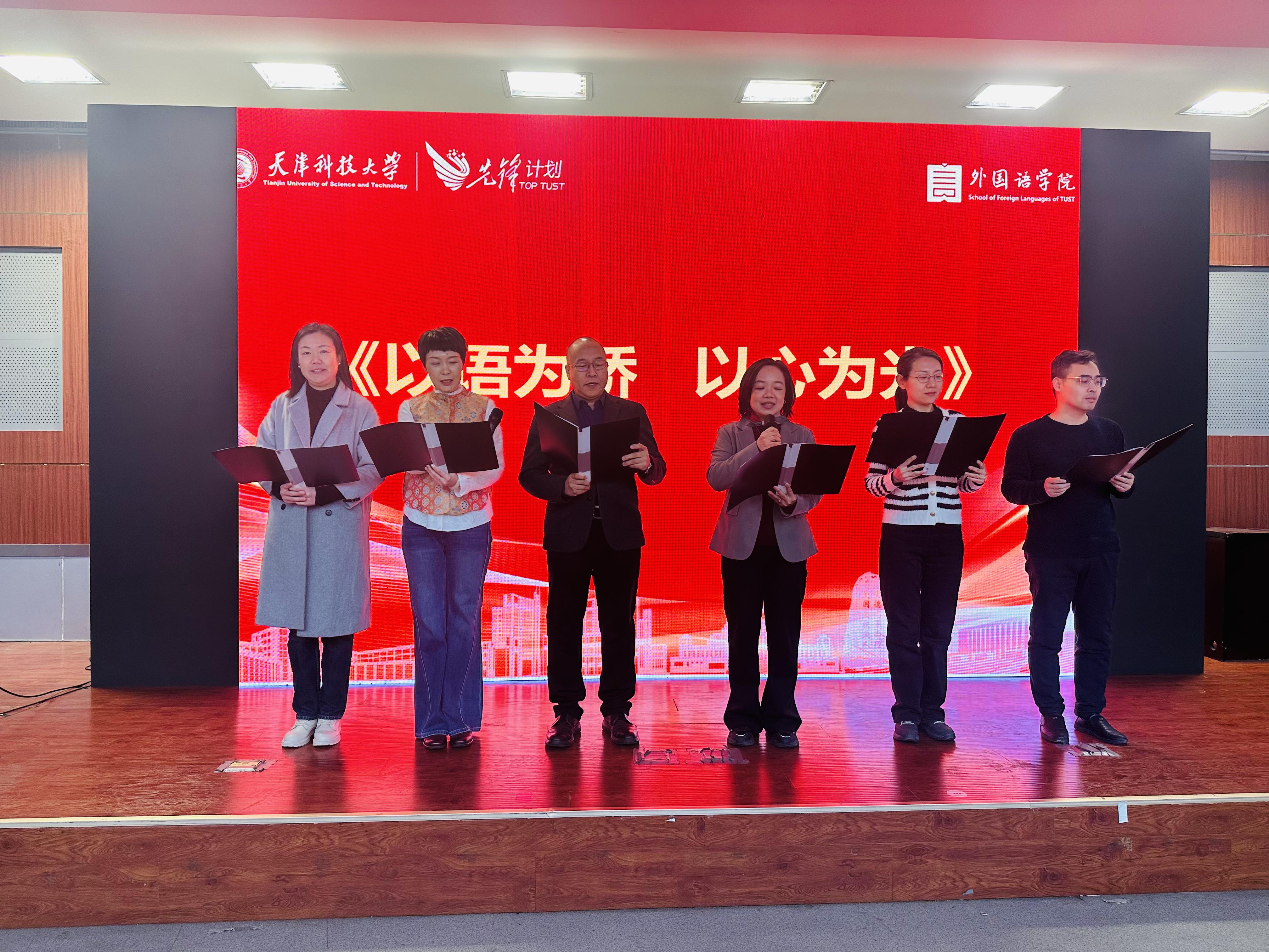 活动最后,学院领导集体登台,以一首《以语为桥,以心为光》的精彩朗诵将现场气氛推向高潮。领导们用铿锵有力的声音,寄语全院教职工以语言为桥梁连接世界,以初心为光芒照亮前程,充分展现了学院领导班子团结奋进、引领发展的良好风貌,赢得了在场观众的阵阵掌声。